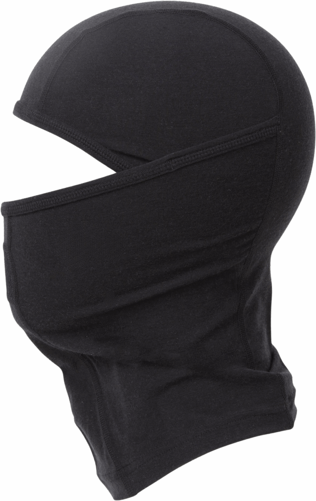 Shields your face, neck, and head from cold and wind.